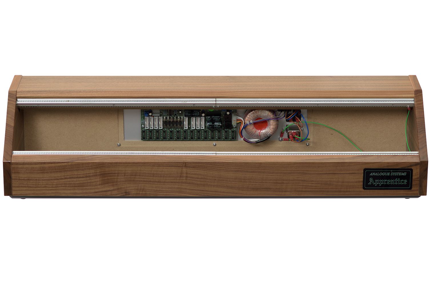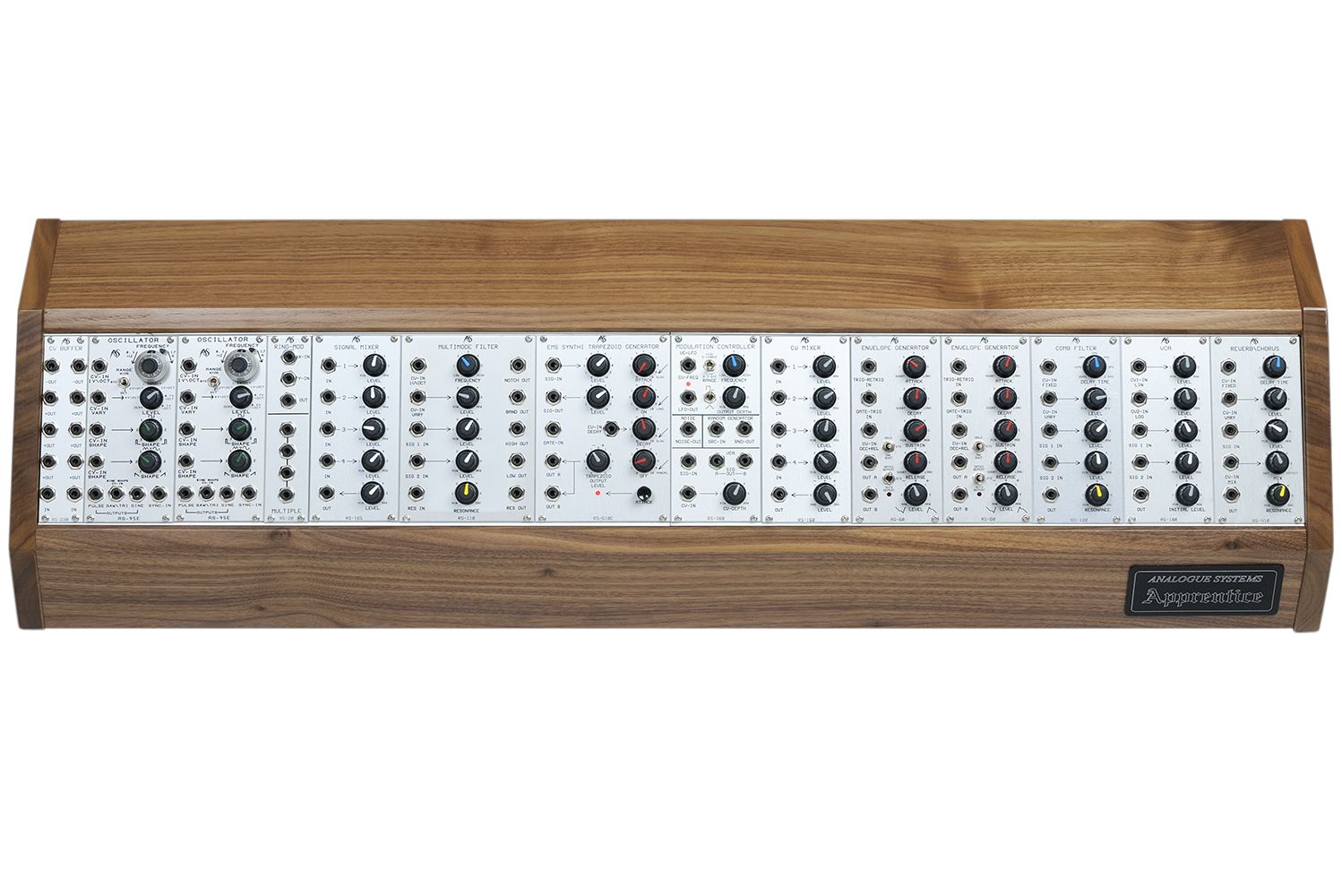 The apprentice cabinet is a neat 3U desk housing for Analogue Systems and Eurorack modules. It is made of walnut and was built skillfully by an English organ builder.